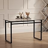 - Product Features1. Package Includes: 1x Table, 1x Instruction, 1x Accessory Bag.2. Glass Dining Table: Elevate your dining space with our glass dining table, boasting a sleek design with black metal legs that seamlessly combine style and stability.3. Tempered Glass Kitchen Table: Crafted from 8mm thick tempered glass, this dining table is not only an eye-catching centerpiece but also incredibly durable, resistant to scratches and everyday wear.4. 4-6 Seater Glass Dining Table: With ample room, this table comfortably seats 4-6 individuals, making it ideal for family dinners, gatherings with friends, or intimate dining experiences.5. Stylish Contemporary Dining Table: Beyond the dining room, this table can be used as a stylish desk, workspace, or a sleek addition to your living area, providing a touch of contemporary design.6. Easy-to-Clean Glass Kitchen Table: The glass tabletop is a breeze to clean, allowing you to effortlessly maintain its stunning appearance.7. Modern Minimalist Charm Dining Table: The minimalist design and black metal accents add a touch of modern sophistication to your living space.8. Sleek Glass Dining Furniture: The tempered glass is shatter-resistant, ensuring the safety of your family, especially if you have children.9. Assembly instruction and assemble tools are included, easy to install.Most people can do in 10-15 minutes.10. Please note: All colors on our website are for reference only, actual product colors may vary a little bit, due to different color settings of every screen device.