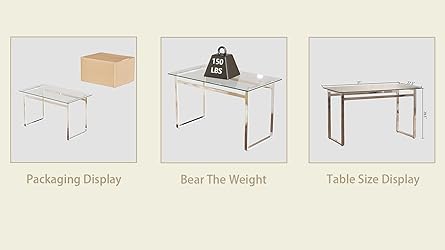 - Product Features1. Package Includes: 1x Table, 1x Instruction, 1x Accessory Bag.2. Glass Dining Table: Elevate your dining space with our glass dining table, boasting a sleek design with black metal legs that seamlessly combine style and stability.3. Tempered Glass Kitchen Table: Crafted from 8mm thick tempered glass, this dining table is not only an eye-catching centerpiece but also incredibly durable, resistant to scratches and everyday wear.4. 4-6 Seater Glass Dining Table: With ample room, this table comfortably seats 4-6 individuals, making it ideal for family dinners, gatherings with friends, or intimate dining experiences.5. Stylish Contemporary Dining Table: Beyond the dining room, this table can be used as a stylish desk, workspace, or a sleek addition to your living area, providing a touch of contemporary design.6. Easy-to-Clean Glass Kitchen Table: The glass tabletop is a breeze to clean, allowing you to effortlessly maintain its stunning appearance.7. Modern Minimalist Charm Dining Table: The minimalist design and black metal accents add a touch of modern sophistication to your living space.8. Sleek Glass Dining Furniture: The tempered glass is shatter-resistant, ensuring the safety of your family, especially if you have children.9. Assembly instruction and assemble tools are included, easy to install.Most people can do in 10-15 minutes.10. Please note: All colors on our website are for reference only, actual product colors may vary a little bit, due to different color settings of every screen device.