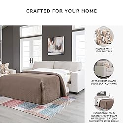 Signature Design by Ashley Aviemore Coastal Sofa Sleeper with Folding Memory Foam Mattress and 2 Accent Pillows, Queen, Beige