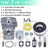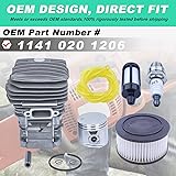 【Compatible with】Big Bore Cylinder Piston Kit for Stihl MS291 MS291C MS271 MS271C Chainsaw. 【OEM Part Number】Cylinder & Piston Kit replace OEM for 1141 020 1206, 1141 020 1201. 【Precision Fit】The Chrome Piston and Cylinder Kit is specifically designed to fit for Stihl MS291 MS271 , an exact match for optimal performance and reliability. 【MS291 Cylinder & Piston Kit】1 x Cylinder Piston Kit(Old Style), 1 x Air Filter Screen Model, 1 x Spark Plug, 1 x Oil Filter, 2 x Carburetor Gasket, 1 x Fuel Pipe, 1 x Fuel Line(2.5x5mm), 1 x Fuel Filter, 2 x Bar Nut. 【Easy to Install】By strictly following the original specifications and OEM standards, the replacement work will be quick and easy. The high-quality cylinder helps maintain the good condition of the engine.