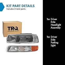 Kit Includes: 1 Driver Side Headlight Assembly; 1 Driver Side Parking Light Reference Numbers: 15199558; 16526133; 114-02721L; 12-5100-01; 20-5500-00; GM2502187; GM2520173 YOUR TRUSTED DIY VIDEO SOURCE: TRQ offers the largest catalog of DIY videos for replacement parts, making installation easier and repairs more accessible. Our mission is to help you "View Before You Do," with hundreds of new videos added weekly. TRUST & COMPATIBILITY: For over 25 years, TRQ has been the premium choice for direct-fit replacement parts. Confirm fitment with the Amazon Garage "confirmed fit" feature and review our full compatibility chart below before purchase. EASE OF INSTALLATION: Save time and effort with pre-assembled components designed as direct replacements for the original equipment, ensuring precise fit and eliminating the need for modifications.