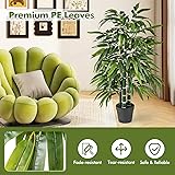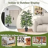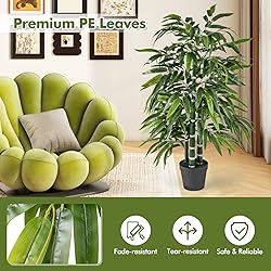 Premium PE Leaves: This artificial bamboo leaf tree features reliable PE leaves that mimic the lushness and vibrancy of natural foliage. Besides, these leaves are fade-resistant and tear-resistant, which can maintain their color and texture well with long-term use. Indoor & Outdoor Display: This tall artificial plant is versatile and adaptable, suitable for various scenarios. Whether you're looking to enhance the ambiance of your living room, create a serene study nook, or adorn your patio with a touch of nature, this tree is an ideal choice. No Maintenance Required: Unlike real decoration trees, this faux tree requires no watering, fertilization, or pruning. It stays evergreen in all four seasons, offering a low-maintenance solution for those who want the beauty of nature without the work. More Realistic Details: The vibrant leaves and 3 sturdy PE bamboo poles are designed to replicate nature's beauty, adding to the authenticity and stability of the display. Besides, it also comes with realistic simulation soil to make it more natural. Stable Frame & Dimensions: Featuring a stable pot with cement filling, this faux bamboo tree ensures it remains upright and undisturbed by children or pets. With a 50" overall height and an 8" pot, it provides a lifelike presence without taking too much space.