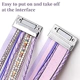 【You will get】You will receive 2 piece 8.6x1.1 inch purple and pink boho heart shape multi-layer woven bracelets.Exquisite boho heart-shape multi-layer woven bracelet add highlight to your overall cloth and jewelry match. 【Multi layer fashion design】Boho bracelet adopts multi-layer winding design and comes with a golden heart shape, small rhinestones, small chains and other elements,consists of multiple strips of different styles of leather.Boho bracelet very exquisite and is a must-have fashion item for daily life. 【Quality material】Cuff leather bracelet is made of high-quality leather and zinc alloy.The bracelet does not fade,has no irritating odor,and can maintain its beautiful appearance for a long time and is comfortable to wear. 【Easy to use】The interface of the leather bracelet adopts electroplating technology,and the alloy closure clasp is rounded and smooth,sturdy and reliable without hurting your hand,which can be easily worn and removed. 【Occasion】Leather Wrap Bracelets can be matched with your various clothes,such as jeans,dresses,shorts,skirts.Also can be used with other jewelry for parties,birthday parties,Christmas,anniversaries,graduation ceremonies,and other occasions!
