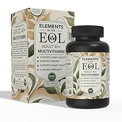 - Premium Daily Multivitamin for Adults 40+ | Complete Nutrition for Energy, Heart & Brain HealthAs we age, our bodies require additional nutritional support to maintain energy, focus, and overall wellness. Our 40+ Multivitamin is packed with essential vitamins and supplements to help keep you feeling your best. With a science-backed formula, we’ve combined nature’s finest ingredients with organic, vegan, and methylated nutrients for superior absorption and effectiveness.✔ METHYLATED B VITAMINS FOR BETTER ABSORPTION This formula features methylated Vitamin B12 (Methylcobalamin) & Folate, ensuring optimal bioavailability for natural energy production, brain health, and metabolism support.✔ ORGANIC PULLULAN CAPSULES – NO GELATIN, NO SYNTHETIC COATINGS Made with the world’s first 100% organic pullulan capsules, free from gelatin and artificial ingredients. A cleaner, plant-based alternative to standard capsule options.✔ NATURAL INGREDIENTS – NO CHEAP FILLERS Unlike other brands, we use organic rice flour instead of artificial fillers or harmful flow agents. No magnesium stearate, no synthetic additives—just clean, quality nutrition.✔ TARGETED 40+ NUTRIENTS FOR HEART, BRAIN & IMMUNE SUPPORT Formulated with DHA Algal Powder, CoQ10, Resveratrol, Lutein, Zeaxanthin, and Green Tea Extract to help support cardiovascular health, brain function, eye health, and longevity.Support your health naturally with the best multivitamin for adults 40, 50, and beyond. Stay energized, sharp, and strong with **Elements of Life**.