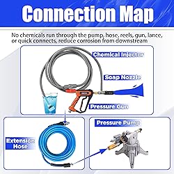 - By preventing chemicals from going through the pump, hose, reels, lance, or quick connects, this compatible nozzle reduces the likelihood of corrosion developing and damaging the pressure washer equipment.