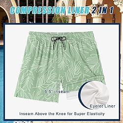 Quick Dry Fabric -- Made of quick drying polyester material, lightweight, excellent ability of water repellent, COOFANDY men swim trunk mainly designed for keeping you dry and comfort in exercise and beach 2 in 1 Compression Liner -- The men short bathing suit designed with soft boxer brief liner with breath ability prevents the outer fabric from rubbing against the skin. With elastic waistband and two sides pockets, the swimwear is going to provide more flexible Fashion Beach Style -- This men square cut swimsuit with 5.5" inseam is above your knee which shows your sexy charming figure and high grade at the same time. You can get a pair of slippers and a beach shirt to match this board short swimwear for a leisure look in your beach time Applicable Occasions -- This men quick dry swimwear is perfect for both indoor and outdoor activities, such as surfing, swimming, beach volleyball, kayaking, fishing, running, athletic, walking, hiking, casual wear or just at home Warm tips -- Machine wash and hand wash are both available for this 5.5 inch swimming trunks. Please check your size with our SIZE CHART before you buy it. Give your summer wardrobe a trendy addition with these COOFANDY men short swim trunk