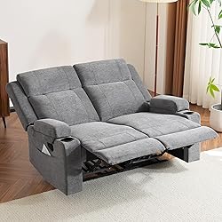 Chenille Upholstery Ultra-Wide Loveseat Recliner for Ultimate Comfort: This manual recliner sofa features an impressive 43-inch seat width, thick armrest padding, and extended back cushions, offering unmatched comfort and support. Perfect as a loveseat recliner or couch for living room furniture and small spaces especially for spring or renovation season. Convenient Side Storage Pocket: Equipped with an oversized side pocket, this loveseat recliner allows easy storage for remotes, books, or other living room essentials. An essential addition to couches for living rooms or multifunctional spaces. Manual Reclining Sofa with Adjustable Positions: Effortlessly recline this sofa couch to your desired angle using the simple manual mechanism. Designed for versatility, it fits seamlessly into living room couches, RV recliners, or even home theaters. Premium Chenille Upholstery with Easy Care: Upholstered with high-quality chenille fabric, this reclining loveseat provides a soft touch, luxurious feel, and superior durability. Ideal for sofas for living room settings or as a love seat for your RV or apartment.