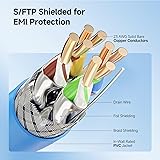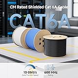 Shielded Cat6a Bulk Ethernet Cable: CM-rated solid shielded Cat 6A Shielded/Foil Twisted Pair (S/FTP) bulk cable is engineered for demanding or harsh environments with high bandwidth needs. Equip your network with this Cat6a cable bulk/ Cat6a ethernet cable 500ft for 10 Gigabit Ethernet, with backward compatibility to 10/100/1000 Ethernet in the home, office, data center, or warehouse. 23AWG Solid Copper Conductors: This Cat 6a Shielded Ethernet cable features heavy-duty 23 AWG bare copper conductors supporting enhanced 600MHz bandwidth capacity for high-speed computer networks, audio/video streaming, and security systems. This Cat6a network cable / Cat6a LAN cable supports Power over Ethernet (PoE) and Voice over Internet Protocol (VoIP) applications. 10 Gigabit Ethernet Performance: This Cat 6A ethernet cord delivers reliable 10 Gig ethernet performance with 600MHz bandwidth, providing extra headroom for high-bandwidth applications including UHD video, IP surveillance, cloud computing, and enterprise-grade networking. Superior Shielded Construction: Built with solid copper conductors and foil shielding around each twisted pair, plus a braided screen under the jacket, this Cat 6A cable delivers maximum EMI/RFI protection and reduces alien crosstalk (AXT) for dependable signal quality. UL Listed for Safety and Compliance: UL listed (E485863) Cat 6a Ethernet cable bulk meets or exceeds TIA/EIA 568-C.2 and complies with UL 444 specifications for communications cables. Compatible with shielded keystone jacks, patch panels, and modular plugs, this shielded Cat 6a bulk ethernet cable ensures professional-grade performance for residential or commercial installations.