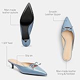 - A sleek style with a touch of playfulness, these leather mules feature a sweet bow detail. With a sharply pointed toe and a sculpted kitten heel, the slip-on silhouette is finished with our tonal Signature hardware for a subtle heritage touch. Leather upper, man-made leather lining, leather footbed, man-made leather outsole, slip on, 1 3/4" heel.