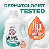 ARM & HAMMER Deep Clean Free & Clear Liquid Laundry Detergent fragrance free, dye free formula; a 102 fl oz bottle cleans 68 medium loads, when used as directed This free and clear laundry detergent penetrates deep into fabrics to remove tough stains and odors; but its gentle, dermatologist tested formula is suitable for sensitive skin and SkinSAFE certified With 4X the stain fighters of the leading value detergent per dose; its pH Power Technology draws out stains between fibers and breaks them up at the source, for a deep clean in just one wash A dye-free laundry detergent formula with no perfumes, no preservatives, no phosphates, no parabens, no chlorine bleach, and no ammonia This fragrance-free laundry soap delivers a deep clean in loads of dark, colored or white clothing in standard and high efficiency (HE) washing machines at all wash temperatures, even cold water