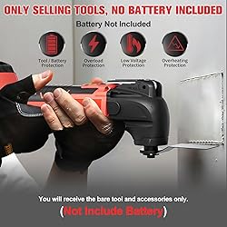 【Friendly Reminder】 This product only includes the bare tool and accessories, and does not include batteries. You need to prepare batteries in advance to use this tool 【Battery Compatible】Cordless Oscillating Tool compatible with Milwaukee 18V lithium-ion batteries. It provides long-lasting and reliable power (Note: This product does not include battery) 【Portable & Cordless】Oscillating Multi Tool featuring a wireless design, freeing you from the constraints of power cords. It is especially convenient for working in tight spaces or outdoor environments, offering flexibility for various applications 【Powerful Motor & 6 Variable Speed】Equipped with a high-efficiency motor, offering 6 adjustable speed settings, with oscillation speeds ranging from 6,000 to 20,000 OPM (oscillations per minute) 【LED Light & Wide Oscillating Angle】Our Oscillating Saw with built-in LED light illuminate the work area, providing enhanced visibility. While the 4° wide oscillation angle design ensures precise cutting in narrow corners and gaps 【Quick Blade Change & Multi-functional Accessories】Oscillating Multi Tool Kit equipped with a quick-change system. Quickly install blades in 3 steps, no tools required. Multi-functional accessories including saw blades, scrapers, sandpaper and more, meeting the cutting, sanding and scraping needs for various materials (such as wood, metal, plastic)