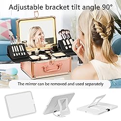 【Detachable Mirror】The makeup case features a detachable mirror with a 90-degree adjustable stand, allowing it to be used on a desktop or folded for easy portability in your bag. 【Adjustable Lighting】The mirror offers three lighting modes (cool, warm, and natural light) with adjustable brightness, simulating various lighting scenarios for precise makeup application. 【Customizable Storage】Equipped with multiple removable EVA dividers and 2 foldable brush holders, which means makeup box provides customizable storage. The brush holders can stand upright for easy access. The interior is waterproof and easy to clean, while shockproof foam protects your cosmetics. 【Travel-Friendly】Despite its many features, the makeup train case is compact (10.2 x 8 x 5.7 inches) and lightweight, making it perfect for travel. The ABS material and aluminum-reinforced corners ensure durability and safety. 【Professional & Gift-Ready】This makeup box organizer is Ideal for professionals like nail artists, makeup artists, and tattooists, this makeup box also makes a thoughtful gift for your loved ones on special occasions.