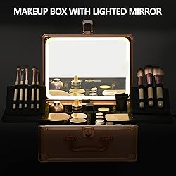 - This makeup case with a lighted mirror features many thoughtful details: the makeup brush holder can stand upright for easy use, the lighting is adjustable, and the material is both sturdy and portable.