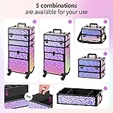 【Modular Design】This makeup train case consists of multiple detachable modules for customizable setups freely. 2 drawers provide easy access without taking things apart. 【Pick-and-Go Convenience】The top compartment works as a portable makeup case with a handle and detachable shoulder strap for hand-carry or over-the-shoulder use. An adjustable pull-handle is included for comfortable pulling. 【Versatile & Customizable Trays】The lower tray features a foam holder for nail polish bottles of various sizes. Removable for use with larger items like hairdryers. The middle tray is portable and includes adjustable dividers for DIY storage 【Secure & Protection】Your items are protected not only by locks on every layer& drawers but also by metal-reinforced edges& corners. The removable wheels provide smooth, quiet mobility. Dustproof and waterproof outer shell is easy to clean 【Professional-Grade】 This rolling makeup case is not only designed for professionals like makeup artists, nail technicians, hairstylists and tattoo, but also makes a thoughtful and practical gift for any occasion.