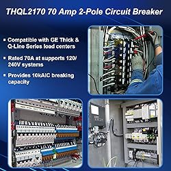 - THQL2170 70 Amp 2-Pole Circuit Breaker, 10kAIC, 120/240V, Compatible with GE Thick & Q-Line Series Load Centers, Thermal Magnetic Protection, Plug-In Mount Standard,Fit for General Electric