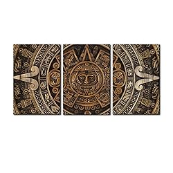 Pacimo Framed Canvas Print Wall Art Set Ancient Aztec Calendar Nature Illustrations Giclee Poster Gallery Wrapped Mayan Calendar Modern Artwork for Living Room, Bedroom, Office - 16"x24"x3 Panels
