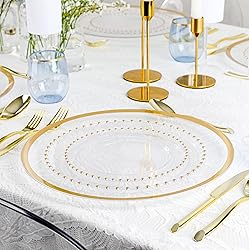 Elegant Design- Beautifully designed plastic dishes add a touch of sophistication and class to your events. For all your special occasion- the perfect finish to your tablescape for weddings, parties, dinners, special events, holidays, hosting, and more. Convenient and Disposable plastic dishes offer convenience and ease with no worry of broken dishes no hours spent washing dishes after the event. High quality and durable food grade plastic plates are food safe and can be safely used for both hot and cold food. Affordable- Set your table with beautiful plastic plates with elegant and modern designs. Give your table a high end look without the cost of real china dishes.