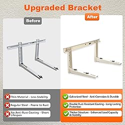 【Heavy-Duty Steel Construction】Made of thick, durable steel with anti-rust powder coating to ensure long-lasting strength and performance in all weather conditions. Built to support up to 265 lbs safely and securely. 【Universal Fit for Most Units】Designed to accommodate ductless mini split air conditioners from 9,000 to 36,000 BTU. Compatible with most leading brands, offering wide applicability for residential or commercial use. 【Stable & Anti-Vibration Design】Triangular structure enhances overall stability. Rubber pads on the base reduce vibration and noise, helping protect both the wall and the unit. 【Quick & Easy Installation】Comes with all necessary mounting hardware. Pre-drilled holes and adjustable arms make it easy to install on various wall types, including brick, concrete, or wood. 【Space-Saving & Weatherproof】Elevates the outdoor unit off the ground to prevent water damage, corrosion, and pest intrusion. Ideal for homes where space is limited or ground installation is not ideal.