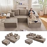 96" W Cloud Sectional Couch with Ottoman,Modern U-Shaped Cloud Couch with Deep Seat,Comfy Corduroy 3-Seater Sofa,Memory Foam Sofa for Living Room,No Assembly (Camel,Right-Facing Chaise)