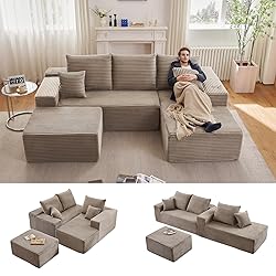 Comfy Chaise Lounge: Indulge in pure comfort with the chaise lounge, crafted for relaxation and ultimate lounging. Made with high-resilience foam and coil spring reinforcement, this chaise offers a plush, cloud-like seating experience that’s perfect for stretching out, reading, or simply unwinding. Its spacious design makes it the ideal spot to escape and relax, and it seamlessly pairs with the modular sofa to create a cozy corner in your home Versatile Modular Sofa Design: Revamp your living space with the flexibility of our modular sofa. This U-shaped sectional comes in 2 separate pieces, allowing you to create endless configurations that fit your room size and style preferences. The removable ottoman adds extra functionality, easily transforming into additional seating or serving as a footrest. Perfect for apartments, living rooms, or any area that needs a stylish yet functional upgrade, this sofa adapts to your lifestyle needs Luxurious Corduroy Upholstery: Sink into luxury with our high-quality corduroy fabric, designed to be soft, breathable, and durable. This skin-friendly material provides a comfortable seating experience while adding a sophisticated touch to your décor. The sofa comes with 3 large cushions , enhancing both comfort and longevity. It's a perfect combination of modern style and functional comfort for your home No Assembly Required: Enjoy a stress-free setup with a sofa that comes fully assembled! No tools, no hassle—simply unbox, fluff the cushions, and within 72 hours, you’ll have a perfectly shaped chenille sofa ready to enjoy, providing comfort and style without any complicated assembly Compact & Space-Saving Design: Ideal for any room, from small apartments to spacious living areas, this modular sofa is designed to maximize space while providing plenty of seating. Its compact design allows for easy navigation through narrow hallways and doorways, while still offering ample room for relaxation. Note: The sectional is shipped in 2 separate packages, which may arrive at different times
