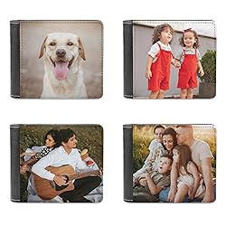 HOW TO CUSTOM: Please start by clicking "Customize now" button and click "Browse" button to upload picture, Also your can type your text you can choose the typeface and text color, and resize and adjust your image and text HIGH QUALITY MATERIAL: Customizable photo wallets for men are made of high-quality PU leather. The texture of the wallet is fine and smooth, comfortable touch, durable and soft, wallet appearance is high-end and fashionable, and the details show exquisite craftsmanship, for both men and women. LARGE CAPACITY WALLET:Men's leather wallet measures 4.6 x 3.7 x 1.0 inches. Bifold wallet includes 6 card slots, 2 hidden compartments, and currency compartments. It can easily store all your important cards, cash and ID cards, fully meeting your daily needs.Even if you put it in your trouser pocket, it will not feel bloated,and it is easy to carry. GREAT SURPRISE GIFT IDEA: Personalized men's wallets can add your favorite image/logo and name/text/initials.Custom wallet is perfect gift For Men Husband Bf Dad Son Uncle Friend. It Is A Great Gift For Father'S Day, Birthday, Valentine'S Day, Thanksgiving, Anniversary, Wedding CUSTOMER FIRST: We are committed to bringing customers the best experience.Portable wallet for men would be printed totally as your image, to achieve the best display effect for high quality wallets, please upload clear and high-definition images.