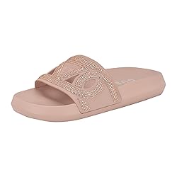 Shimmer in the sunlight wearing the Payca by Guess. Supported by a molded footbed, the rhinestone embellished upper outlines the signature Guess logo. Est. 1981, Guess is a global lifestyle brand and a symbol of a young, adventurous lifestyle. Open/Round Toe ; Slip-on Closure Man Made Upper 1.18" platform