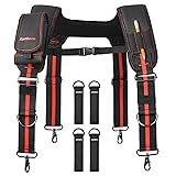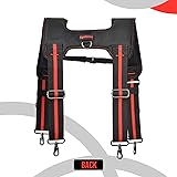 🔧 All-Day Comfort with Padded Shoulder Straps - The tool belt suspenders ergonomically designed padded straps reduce shoulder fatigue,and the 4-point support design provides ultimate comfort. Ideal for heavy duty tool belt suspenders used in long workdays. 💪 Adjustable X-Back Design for Balanced Support - Four-point X-back harness evenly distributes weight and prevents belt sagging. A must-have for electricians, carpenters, and builders.Adjustable work belt suspenders to fit your different needs! 👌 Universal Compatibility with Most Tool Belts - These tool belt suspender Includes 4 metal hooks and 4 D-ring straps to help you carry heavier loads. compatible with all standard tool belts, rigs, and tool systems. Easy to install and remove. 🧘 Tactical Style with Utility Pockets - Work belt suspenders features built-in pencil holder and Velcro pocket for quick access. Large Detachable Phone Holder with Reflective Tape , Pencil holder , tape measure webbing holder make your job more easy,Tactical suspenders styling with black-red contrast stitching. 🔨 Built to Last – Heavy Duty Construction - Reinforced stitching, durable webbing, and metal hardware make it ideal for construction suspenders, roofing, framing, or DIY.this tool suspenders belt is great for carpenter or electricians gifts.
