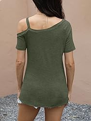 Sexy Cold Shoulder Top: Stretchy and soft fabric, comfortable, lightweight, breathable and skin-friendly; Women Boat Neck Shirts: Summer tops for women, ruched button side tees, casual one shoulder blouses; Feature: Boat neckline, short sleeve, ruched front, button side, solid color, loose fitting, trendy going out tops; Occasions: Womens off the shoulder shirts, perfect for daily wear, date night, traveling or holiday, great to match with shorts, skirts, pants, legging or jeans; Note: Hand washing in cold water or machine washing, do not bleach. Please refer to our product description and check your own size before ordering.