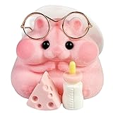 Handmade Taba Squishy Hamster Toy, Cute Squishy Hamster Fidget Toy, Realistic Hamster Toy, Soft Silicone Mochi Furry Toy, Stress Relief Gift for Adults & Kids, Sensory Anxiety Plushie (Pink)
