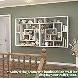 - Unique Wood Geometric Bookshelf 6-Tier Wall Mounted/Freestanding Bookcase with Different Heights Space for Storage/Display for Wall Bedroom Living Room Home Office, 45.5"(W) * 47"(H), White