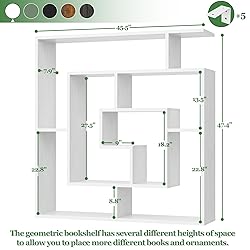Geometric Look Display Shelf - The white book shelf showcases a striking geometric shape, adding a great architectural addition and modern statement to your room. The geometric style is very unique and adds chic elegance to the space, which will be the focal point. The variety of shelf heights allows for different ornaments sizes. Wall Mounted Bookshelf - Comes with metal L brackets for shelves, you can mount it on your wall for display. Mounting it on the wall gives a built-in look. It will look modern and chic and go with your contemporary decor. Versatile Freestanding Bookshelf - This geometric bookshelf adds so much character but takes up minimal space. It's narrow and has a suitable height for a room divider in your home or office, allowing you to display books and all sorts of knick-knacks with an artistic flair. Besides, it's a fun bookcase for kids area, which doesn't eat the room. Adds a lot of style to a blank wall. You can also add it to your foyer space as a piece of entryway furniture. Space Saver & Steady - This piece features many shelves with different heights of space that accommodate items big and small like picture frames, books, collections, trophies, and plants. It's heavy and stable with thickened engineer boards. This wood bookshelf can carry even 150 books and more. Easy to Put Together - Assembling is a piece of cake. It cleverly builds from the inside and spirals out, so easier to put together. Just lay out pieces like putting a puzzle together. Pay attention to the diagram instructions and you will be all set. Everything included. If you have power tools you can finish it in 30 minutes. if not, it will take about 1 hour. Tips: This bookcase is freestanding. However, we do recommend anchoring them to the wall if you have little ones running around. IT COMES WITH WALL ANCHOR.