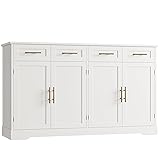 HOSTACK 60" Large Buffet Sideboard with Storage, 36" Tall Kitchen Buffet Storage Cabinet with 4 Drawers, Modern Coffee Bar Cabinet with Gold Handles, Long Sideboard Buffet Table for Kichen, White