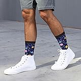 Material: made of 95% polyester + 5% spandex Ideal size: one size fits most, the socks length: 16inch / 40cm, cylinder circumference: 3.15inch / 8cm, which fits most feet size and unisex. Comfort: highest quality polyester & spandex blend provides these fun-themed socks soft comfort all day; lightweight, breathable, stretchy, and durable stay-cool socks keep feet dry and fashion. Application: ideal for activities like running and fitness that require high performance. can also reflect individuality and fashion sense in everyday use. Great gifts - our socks suit to wear in different seasons. awesome gift idea that you can choose for family members, friends in birthdays, christmas, thanksgiving and new year holiday.