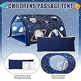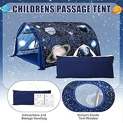 Imagination and Adventure Place: boasting an impressive size of approximately 39.37 x 55.12 x 31.5 inches, this galaxy bed tent provides an ideal secluded space to play and immerse themselves in a colorful, magical world Effortless Setup and Storage: our galaxy tent is not just vibrant and visually appealing, but user friendly as well; It comes with clear instructions, making it easy to assemble; Also included is a carry bag for convenient storage and transport Galaxy Bed Tent: this package includes a bed tent twin, making it a glittery place to travel to their fantasy realm Enchanting Space Design: the exquisite appeal of our galaxy tent is its enchanting design; Featuring beautiful patterns of galaxy, the tent instantly transforms into a mystical playground; The addition of gauze curtains and windows adds charm, ensuring both fun and comfort Endless Possibility: the galaxy playhouse tent is ideal for all kinds of gatherings and events; From galaxy theme parties and birthday parties to indoor play for conditions of weather; This tent also serves beautifully for outdoor activities such as camping; With its versatility, you can enjoy the magic of the tent in various scenarios and settings
