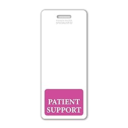 - Introducing our Extra Long Patient Support Badge Buddy – the ultimate solution for clear identification and easy visibility in healthcare! Designed specifically for Patient Supports, our Large Patient Support Badge Buddy ensures your role stands out. With its larger size and bold design, your title Badge Buddy makes an instant impression. Wearing with your standard size vertical ID badge in a vertical orientation badge holder or sleeve, it seamlessly fits below your badge, effectively conveying your professional title to visitors, patients, and colleagues. Meticulously crafted with attention to detail, our oversized hang tag is made from quality materials. Its vibrant colors and crisp designs maintain their integrity, ensuring a professional and eye-catching appearance. By eliminating misidentification, our longer badge buddy promotes seamless workflows and enhances patient safety. Its noticeable size guarantees visibility from a distance. Elevate visibility, professionalism, and patient confidence with Specialist ID's oversized badge buddy set for the team, staff, department or floor – the meeting point where visibility meets excellence. Unlock the full potential of your badge today!