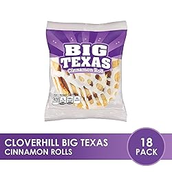 Contains eighteen (18) single serve packages of Cloverhill Big Texas Cinnamon Rolls, 4 oz. There are six (6) single serve Big Texas Cinnamon Rolls per box and three (3) boxes in this pack for a total of eighteen (18) cinnamon rolls, sealed for freshness and convenience! Offers a rich and flaky pastry experience with a touch of cinnamon sugar Conveniently individually wrapped for on-the-go consumption Unwrap a soft cinnamon roll, heat in the microwave for about 30 seconds and enjoy with a fresh cup of coffee for the perfect pick-me-up Big Texas Cinnamon rolls are a convenient time saver and ready to be devoured
