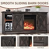 4 EVER WINNER Fireplace TV Stand with Electric Fireplace for 65" TV, Farmhouse Entertainment Center with Sliding Barn Door, Adjustable Storage Cabinets, TV Console Table for Living Room, Dark Brown