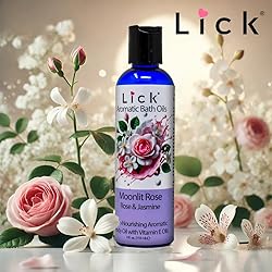 - Indulge in a moment of pure bliss with Lick Aromatic Bath Oils. This luxurious blend combines the nourishing powers of Sweet Almond Oil, Vitamin E, and Jojoba Oil to deeply hydrate and soften your skin. Choose from 12 enchanting aromas designed to brighten your mood and create the perfect atmosphere, whether you're seeking relaxation or something more. The concentrated essential oil formula delivers an great aromatherapy experience, instantly soothing mind and body. Add a few drops to your bath for a spa-like retreat, or smooth over damp skin after showering to seal in moisture. Gentle enough for all skin types, including sensitive skin, this paraben-free formula leaves your skin feeling silky smooth and supple. Transform your daily bathing routine into an extraordinary sensory experience that nurtures both body and spirit.