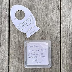 DUAL PURPOSE DESIGN greeting card and memento coaster. One part coaster, one part greeting card, one billion parts fun! UNIQUE GIFTING FOR ANY OCCASION: The most fun, personal, and responsible way to gift a bottled beverage! Don't gift without it. COMPLETELY CUSTOMIZABLE: Fully customizable to fit any occasion or personality. Simply slide open to write your message, slide closed to gift, and tear to enjoy. PERSONALIZED COASTER: A keepsake to remember the occasion. The coaster serves as a lasting memento, making the moment truly unforgettable. It's perfect for displaying, using, or even collecting! BUILT TO LAST: Durable, high-quality design meant to last a lifetime. USA Made: Proudly printed and produced entirely in the United States. SUSTAINABLE: Produced from partially recycled plastic in a solar powered facility.