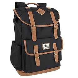 - The world is yours with this stylish black scout backpack with vegan leather trim! Each Kelty 18 inch school, work, and outdoor backpack is constructed to tackle any activity or adventure you have planned! With its multi pocket rugged design, this every day bookbag is packed with cool features including adjustable and sturdy straps, two side pockets for water bottles or gear, a padded tablet/laptop sleeve, and 2 front pockets (hidden front pocket is inside the outer front pocket) for added storage! Each durable bookbag measures 18” x 13” x 6”, and can be trusted to comfortably and effectively transport all you need to camp, work, the gym, sports fields, and beyond. Kelty gives you the easy and spontaneous excuse you need to get out there and escape from the mundane. We build great gear that's made to last and inspire you to rediscover the joy of spontaneous play. Kelty: Playing Hard since 1952.