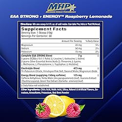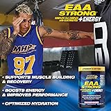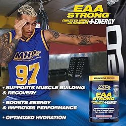 - ENERGIZING ESSENTIAL AMINO ACID SUPPLEMENT: MHP’s EAA STRONG + ENERGY amino acid powder provides 7 grams of all nine essential amino acids, including 5g BCAA. These essential amino acids support muscle building and recovery and guard against muscle breakdown during training.* Plus, it provides natural energizers and electrolytes