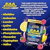 ENHANCES MUSCLE BUILDING AND RECOVERY: using a potent 10:1:1 BCAA ratio (leucine: isoleucine: valine) EAA STRONG + Energy is packed with Leucine, the key amino acid needed for turning on muscle protein synthesis, which leads to muscle repair, recovery, and growth.* BOOSTS ENERGY AND FOCUS: contains 175mg of energizing ingredients including green tea, guarana, yerba mate and caffeine anhydrous OPTIMIZES HYDRATION: contains an advanced 473mg Electrolyte Blend featuring natural “super mineral” sources of Himalayan Pink Salt and Coconut Water to optimize hydration and refuel mineral stores as well as muscular energy and performance. YOUR COMPLETE and CLEAN AMINO ACID SUPPLEMENT: EAA STRONG + ENERGY is made from Vegan Fermented EAA’s and contains no dyes. It mixes instantly and is easy and convenient to use. Use it on training days for pre-workout or intra-workout. Can also be used during the day and on non-training days to keep you energized and provide a steady supply of essential amino acids feeding your muscles.*