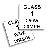 Ebike Sticker Decal (Class 1, 2, 3) – 250W, 350W, 500W, 750W. Pack of 2. (Class 1 250W 20MPH)