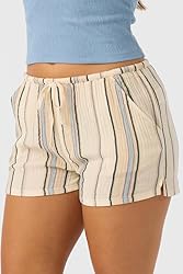 2" Inseam Length, 10 1/2" Rise Length Women's woven short Elastic waist with drawcord The O'riginal California Surf Lifestyle Brand. Shop Boardshorts and More Now. Since 1952 - Front hip pockets - 100% Cotton Crinkle Double Gauze