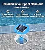 SUPERIOR NEW SOLAR POOL IONIZER DESIGN: Designed to sit inside your existing pool clean out compartment. For optimal performance, ensure your pool's cleanout is located in a sunny area. NOTE: Please review sizing information for proper fit. This is not a free floating ionizers. It is designed to sit inside the pool skimmer/cleanout compartment. SOLAR-POWERED EFFICIENCY: Our solar ionizer pool cleaner uses solar technology to help keep your pool clear and significantly lower the need for chlorine and other chemicals. Suitable for in-ground pools. ADVANCED IONIZATION PROCESS: The underwater ion-disbursing anode releases copper ions which can help maintain pool clarity. This process can help reduce the amount of chlorine needed, similar to methods used in saltwater pools and small electric systems. COST-EFFECTIVE POOL MAINTENANCE: Our pool ionizer can help cut annual chemical costs with easy maintenance features. The copper electrode is durable, lasting approximately two years, providing potential long-term savings and environmental benefits. SUSTAINABLE POOL CLEANING: By employing solar power and copper ions for swimming pools, this solar ionizer for pools can help keep your water clear and may assist in stabilizing pH levels. The product is designed for easy integration into any pool system. EXCELLENT CUSTOMER SERVICE – Our team is always here are ready to help! Reach out to us with any questions about our products! IMPORTANT: LID SIZING: The outer lid is 9 inch 7/8 and the inner ring of the lid is 8 inch 1/4. For best performance always double check that the screw connecting to bottom unit is as tight as possible to maintain it's water tight seal. Carefully remove the unit in order to clean the basket. NOTE: This solar pool ionizer is not compatible with pools using a hydrogen peroxide (H2O2) treatment system. For best results, we recommend a traditional chlorine-based sanitization plan. Patent Pending – 19/028,001