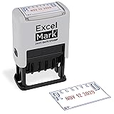 DATE STAMP - ExcelMark's new date stamp offers a better quality stamp than most daters. With 10 years worth of dates, this stamp is expected to last for a long time. COMPLETE CUSTOMIZATION - Our date stamp with text allows you to choose from 6 static phrases and 5 mount colors. We even allow you to enter custom text for more unique and personal uses. CLEAN & EASY - The scroll wheels on our date stamps allow you to effortlessly change the date of your stamp without getting any ink on your fingers. CLEAR & CRISP IMPRESSION - With an impression area of 0.9"x 1.7", our date stamp provides a legible and crisp impression of the date specified. VERSATILE USAGE - Our date stamps can be used for shipping, receiving, expiration, and due dates. Our stamps are best used on paper, parchment, cardboard, and plastic surfaces.