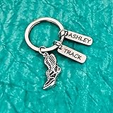 CUSTOMIZABLE DESIGN: Features a running shoe charm with two personalized name tags, perfect for track athletes and runners DURABLE MATERIAL: Crafted from high-quality silver-toned metal for long-lasting wear and a premium look VERSATILE ACCESSORY: Ideal for keys, bags, or sports gear organization with a sturdy split ring design COMPACT SIZE: Running shoe charm and name tags are sized perfectly for everyday carry without being bulky MEANINGFUL GIFT: Perfect personalized keepsake for track team members, coaches, or running enthusiasts