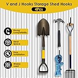 Janoiuc 4PCS Storage Shed Hooks, 2PCS V-Hook + 2PCS J-Hooks for Hanging, Garden Tool Hooks for Shed Wall, Hooks for Plastic Shed Storage, Shed Hooks for Hanging Tools
