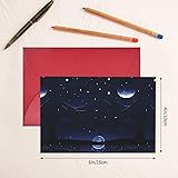 WBQLSL Serene blue night view Red Patterned envelope greeting cards, Christmas, Valentine's Day thank you cards, wedding and party invitations