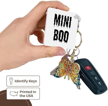 3dRose, Mini Boo. Black drippy lettering on a white background, Key Chain